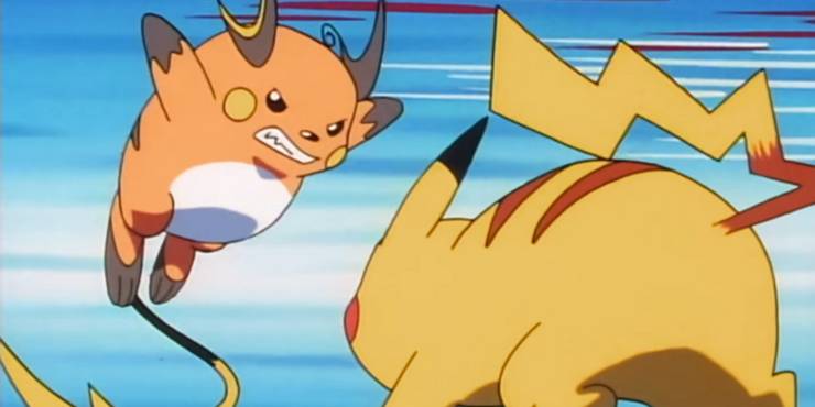 O mesmo pode ser dito de Pikachu quando ele vence o Raichu do tenente Surge, estabelecendo seu domínio sobre sua forma evoluída e mostrando seu desejo de provar que é apenas um Pikachu.